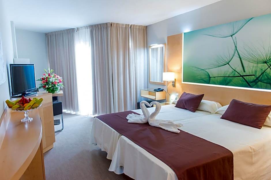Great front line beach front location . Close to shops & bars . Very friendly staff. Room towels & sheets changed daily. Food is outstanding ! Great variety , Spanish flavours & very good quality. Free Cava at breakfast too. Pool is small. Bar is openair & away from the Hotel facing the sea. A steep walk up hill is the massive Yumbo shopping centre and bus stops to all areas including Airport.