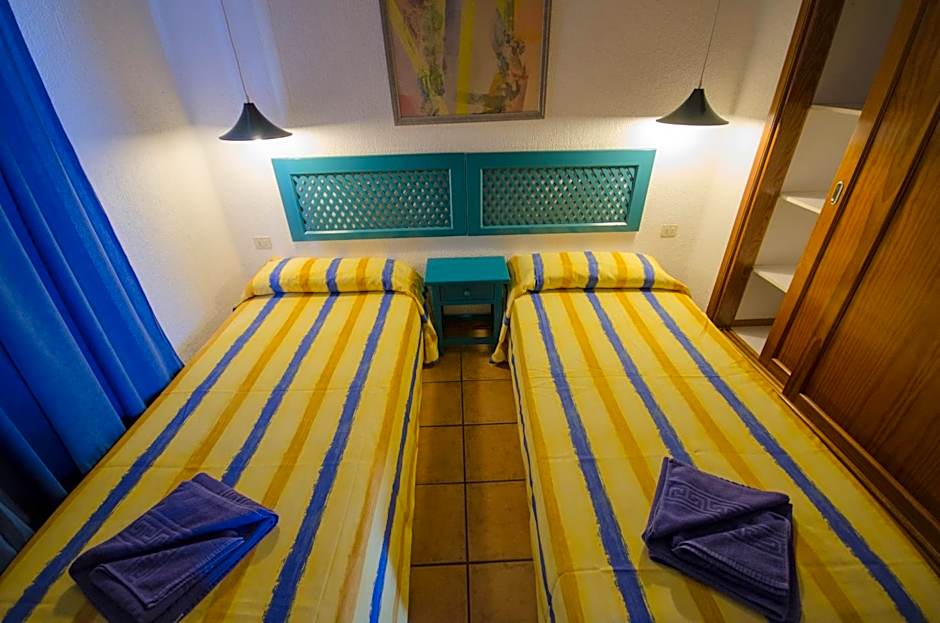 These one-bedroom apartments contain a separate twin bedroom, a living-dining room with sofa bed, and a fully-equipped kitchenette. There is also a bathroom and a balcony or terrace with sea views.