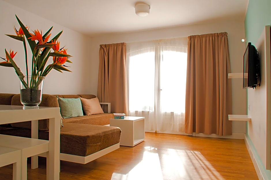 Picture yourself lounging by the outdoor swimming pool or enjoying a thrilling day at the nearby water park (for a little extra splash!). Whether you're whipping up a home-cooked meal in your kitchenette or basking in the sun on the beautiful terrace, this spot has it all. Need a little excitement? Spend your afternoons playing tennis (for extra charges), or take a short stroll to the beach for some fun in the waves. Plus, stay connected with free WiFi and revel in the comfort of air conditioning in your stylish apartment – you may never want to leave!
