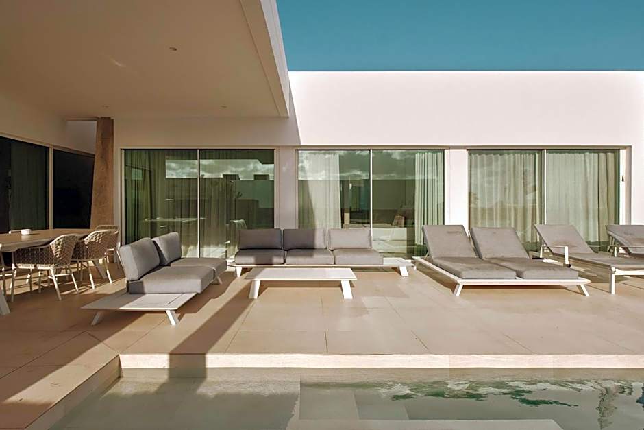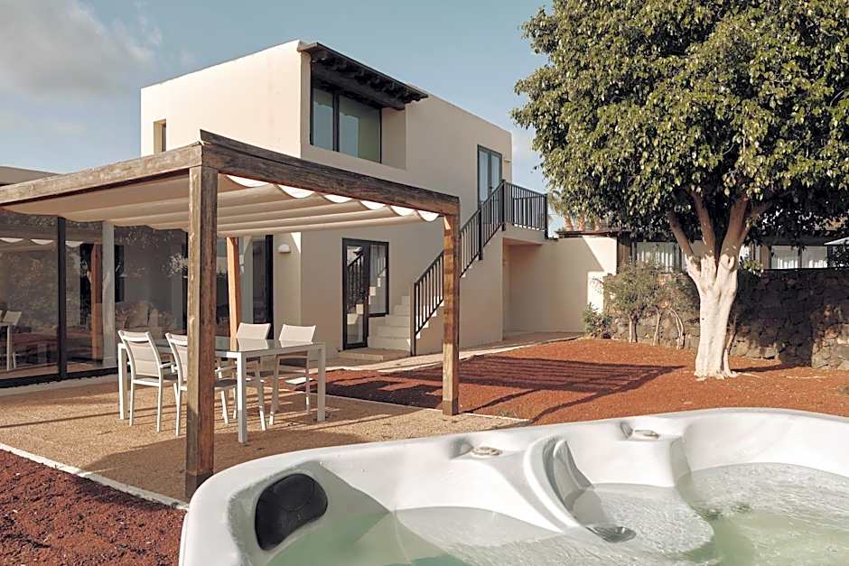 These villas include a private swimming pool, a spacious terrace, private parking, a fully equipped kitchen, three bedrooms with air conditioning in all bedrooms, two bathrooms and a living room with air conditioning and TV.