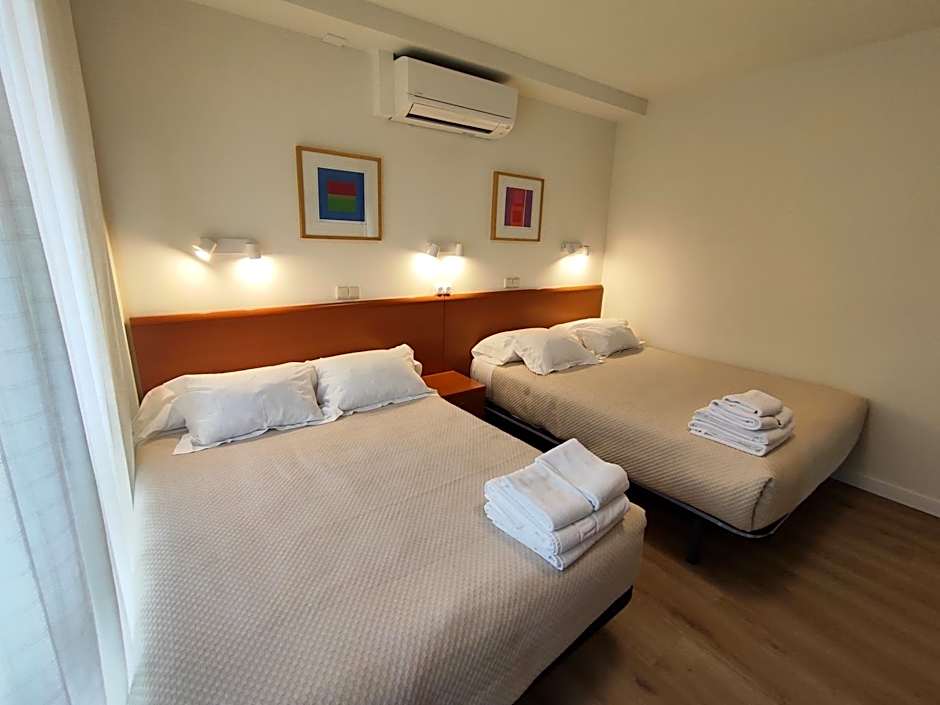 This bright apartment has a bedroom with a double bed or twin beds (subject to availability) and a living room with a sofa bed. The living room also includes satellite TV and a kitchenette with microwave, refrigerator and toaster. The bathroom includes a bathtub or shower. Heating and air conditioning are available. Bed linen and towels are provided.