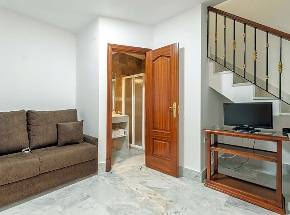 Central location meant we could walk anywhere: up to the base, down to the port, along to the beaches, restaurants, or shopping. We had room 303 which is two- level, with the bathroom and TV room on the entry level and the stairs up to the bedroom + the terrace. Views from the terrace facing east were great, a lovely breeze, shady in the afternoon. A nice place to relax al-fresco. Probably the best room in the hotel. The staff were very helpful, friendly, and always available. We don't speak much Spanish but they had enough English that communication was not a problem.