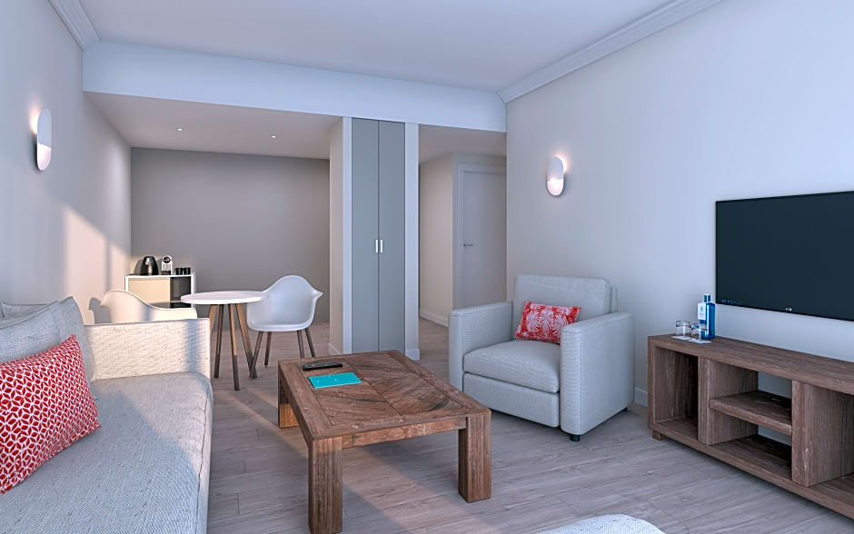 This junior suite is spacious and located in an exclusive area of the property featuring ocean views. Other services include: -Smart TV -Capsule coffee machine -Superior bathroom amenities -Bathrobe and slippers -Scale -Welcome mini-bar with soft drinks, bottle of water and beer -Private check-in and check-out -Exclusive My Favorite Club Lounge serving snacks, coffee, teas and drinks. -Reserved areas in the restaurants and pool -Welcome bottle of sparkling wine and a letter from the General Manager at check-in