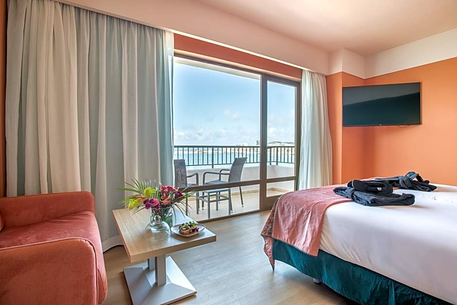 And when the sun sets, the fun definitely doesn’t have to stop. The hotel’s terrace comes alive with live music and performances, giving you the perfect backdrop for a memorable evening. Whether you’re unwinding with a cool drink in hand or dancing the night away, you’ll find the vibrant Ibiza spirit all around you. Plus, with a lively international atmosphere at the onsite restaurant, you can indulge in delicious, family-friendly cuisine that hits the spot after a day of exploring or lounging.