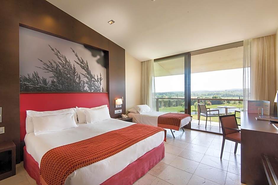Modern, air-conditioned room with 3 single beds, or 1 king-size bed and 1 single bed. There is a balcony with garden or mountains views. This room type does not include Spa access.