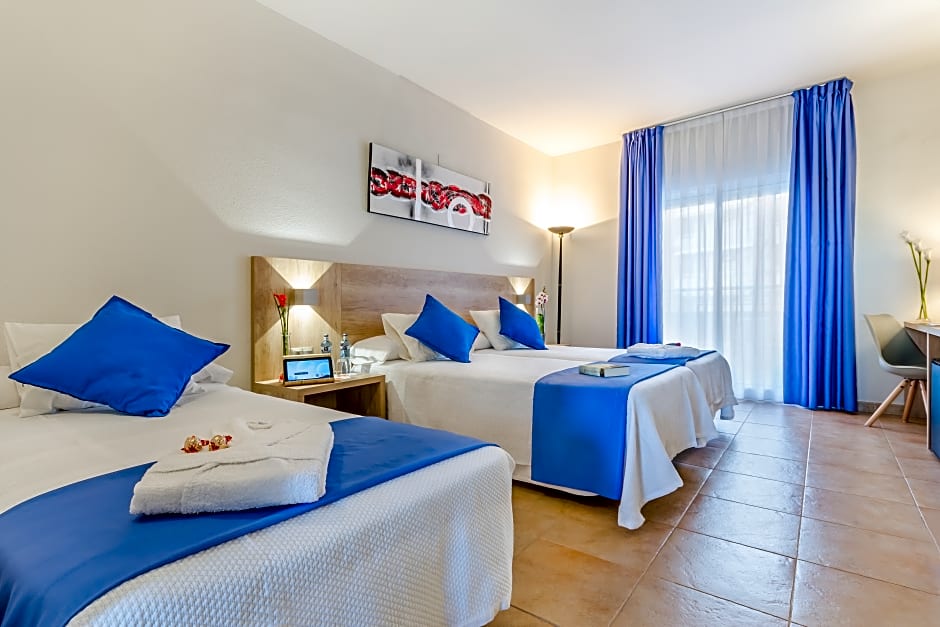 Hotel Gran Playa offers three types of rooms: Twin Rooms, Family Rooms, and Triple Rooms. The Twin Rooms can accommodate 2 adults and have 2 twin beds. The Family Rooms can accommodate 2 adults and 2 children, with 2 twin beds and 2 bunk beds. The Triple Rooms can accommodate 3 adults with 3 twin beds. Smoking is not allowed in any of the rooms. All room sizes are either 237 sqft or 291 sqft.