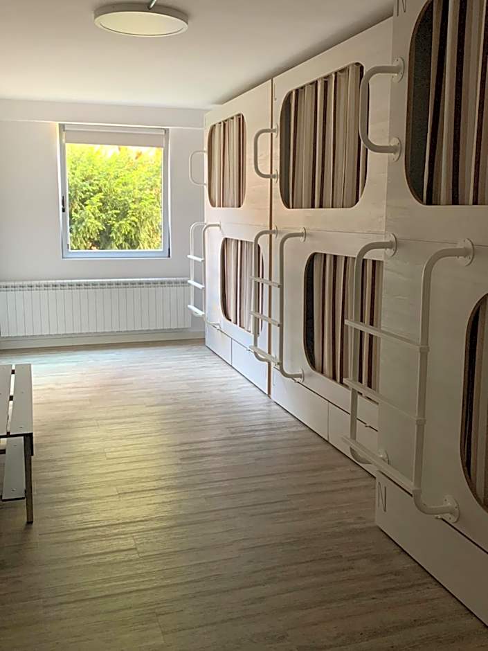Very clean, option for a 4 bed female dorm. Handy drawers under bed for storage, lockable with a padlock. Comfy beds, long and spacious bed area with space for water and other things. Sheets and a blanket, privacy curtain and light and charging point in bed area. Travelling the Camino and was relatively quiet.