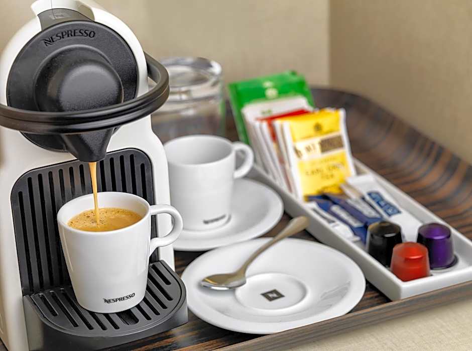 Smart single room with air conditioning, heating and a flat-screen satellite TV. The bathroom comes with a bath or shower, and a hairdryer. A bathrobe and slippers are also provided. A Nespresso coffee machine is available, including 4 capsules per day.