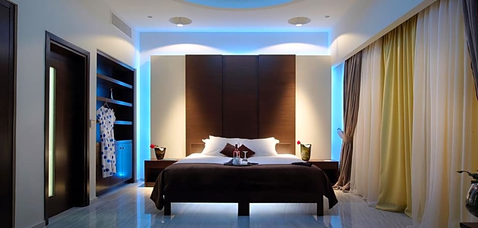 Free WIFI, complimentary water and 100% Egyptian cotton sheets. It has a second level that leads to its own private terrace. Jacuzzi on the outside terrace, with adjustable temperature. Upon availability and upon request to the hotel, an extra bed can be added.