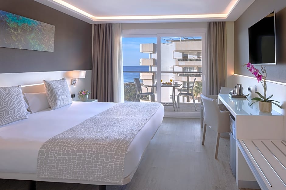 ESTANDAR VISTA MAR 2 PAX includes either a double bed 131-150 width or 2 single beds 80-130 width plus terrace, desk, ironing set, and slippers and is Wheelchair-accessible with a Disability-friendly bathroom.