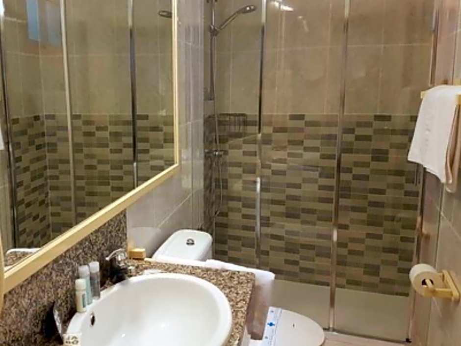 The location of this property is excellent, with lovely views of the sea. I had a room on the top floor which had a generous balcony, with a table and chairs and fold up sun chairs. The room itself is basic but clean. It has a separate bathroom, which is very small and despite my best efforts, I flooded the floor every time I had a shower. The room also has a large jacuzzi Bath off the other side of the bedroom, which has a skylight above it, which gives the room lots of light. There’s a fridge but no coffee making facilities. You get water your first day but it’s not replenished. There is a small shop nearby though, so it’s easy to get some. The reception team are friendly and very helpful and as a solo traveller, I felt very safe. If you stay in the room at the top of this property you are the only one on that floor but the lift only goes to the floor below, so there is a flight of steps. It was fine for me but may not be if you are less mobile.