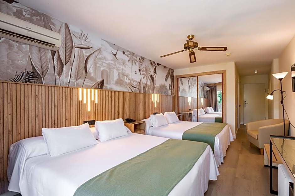 The hotel boasts an outdoor swimming pool, kids' pool, and a sun deck, providing the perfect place to relax and soak in the Spanish sun. Enjoy free Wi-Fi throughout the hotel, and with a shuttle service available (extra charges may apply), exploring the nearby golf course and attractions is made easy. The 24-hour front desk ensures that guests have everything they need throughout their stay. The hotel's live music and performances, along with its restaurant and bar, add an extra touch of entertainment and relaxation to your vacation. The upper floors are accessible by elevator, making it convenient for all guests, and the air-conditioned, non-smoking rooms offer a comfortable and peaceful retreat. Whether you're considering a romantic getaway or a fun-filled family vacation, Hotel Parasol by Dorobe has everything you need for an unforgettable experience.