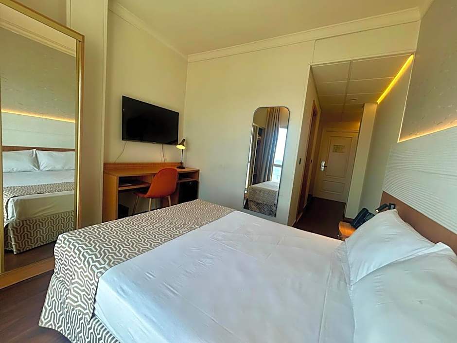 The hotel offers a variety of Double Rooms with options for sea views, accommodating 2 adults with 0-1 children or 3 adults, and all with a room size of 215 sqft. Smoking is not allowed in any of these rooms. Bed configurations include 2 twin beds and 1 double bed, or 3 twin beds.