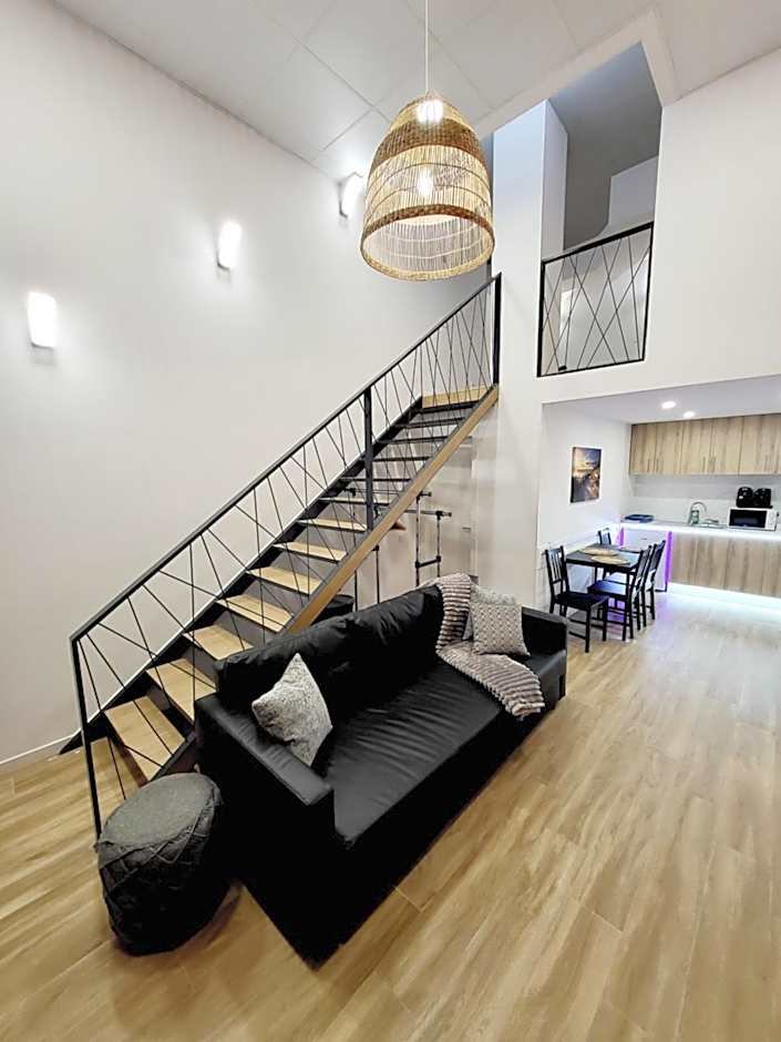 Stay in our stylish Split Level Apartment, featuring a double bed, a sofa bed, and modern amenities like a fully-equipped kitchen, flat-screen TV, and a city view. With its private entrance and air purifiers, this spacious 538 sqft apartment offers a comfortable and safe stay for up to three adults.