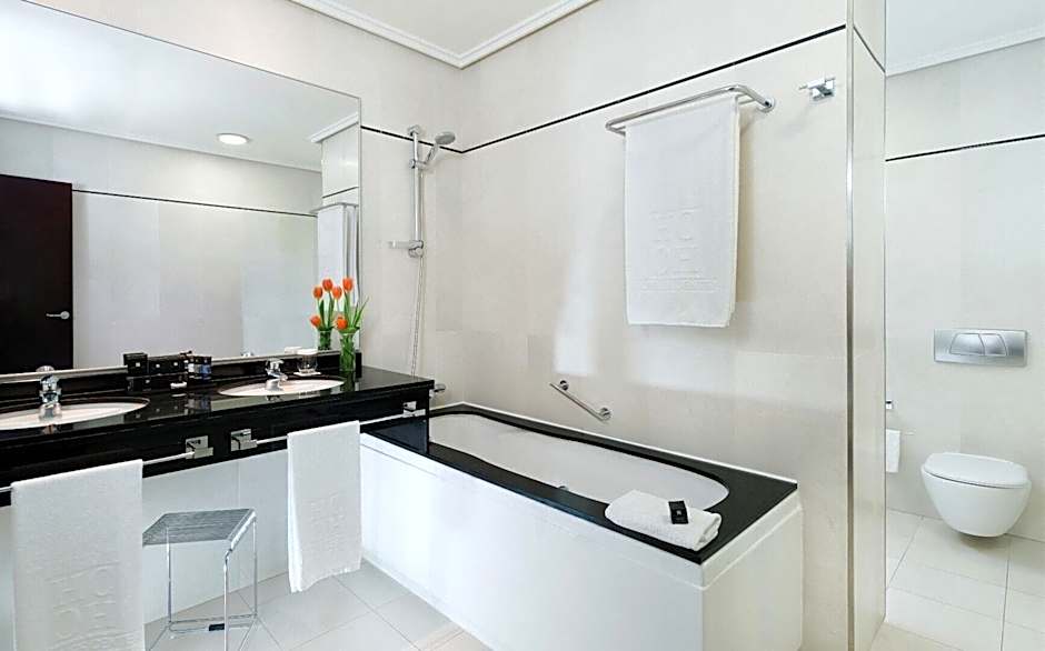 This suite's standout feature is the rooftop pool. This suite includes 1 living room, 1 separate bedroom and 1 bathroom with a bath and free toiletries. The air-conditioned suite offers a flat-screen TV with satellite channels, soundproof walls, a mini-bar, a tea and coffee maker as well as garden views. The unit has 2 beds.