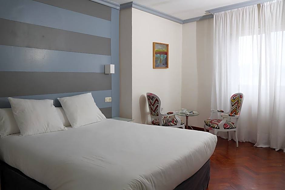 Great location just off the 'old town' but within the city, really nice Tapas Bars and good food all around. staff are great and always willing to help in any way. Had a rear balcony room, cost a little extra but the views made up for that. Don't judge a book by it's cover this little gem is great. Bus from the airport at just E/1.57 each is great, the buses are all priced equally cheaply. Don't forget a trip to Samil beach 20 mins by bus, if possible take food etc as like all summer beaches very pricey.