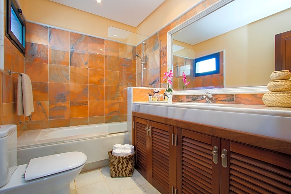 Villa 3 bedrooms 4 adults + 1 child is 1453 square feet and includes either a king-size bed 150-183 width or 2 single beds 80-130 width.