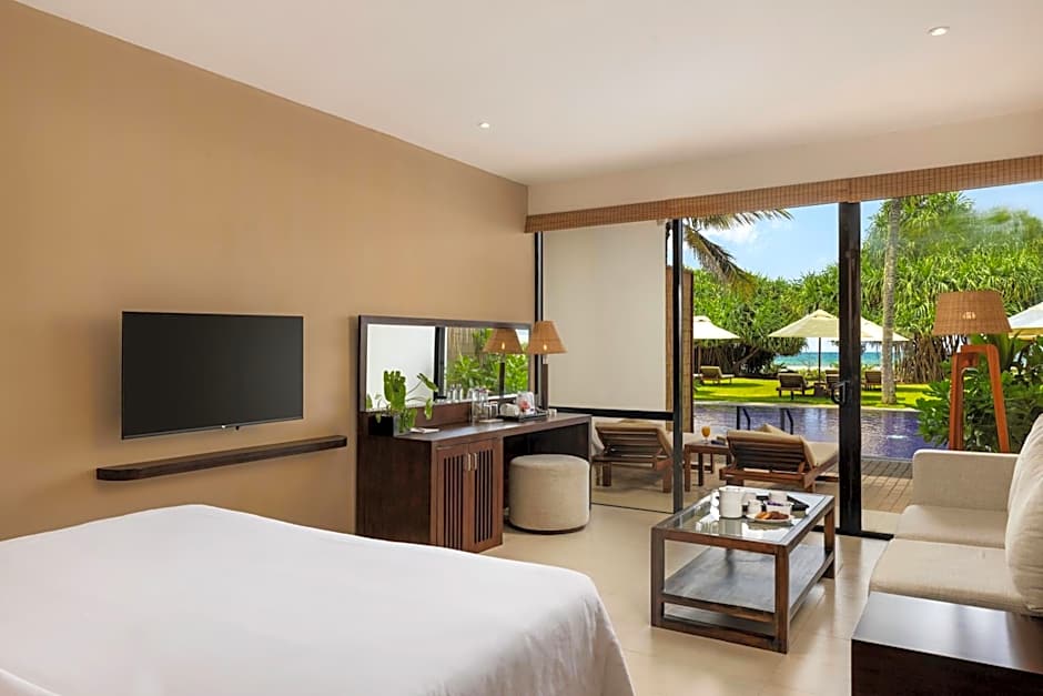 Guests will have a special experience as the suite features a pool with a view. This spacious suite consists of 1 living room, 1 separate bedroom and 1 bathroom with a walk-in shower and free toiletries. The air-conditioned suite provides a flat-screen TV with cable channels, a private entrance, soundproof walls, a mini-bar as well as sea views. The unit offers 2 beds.