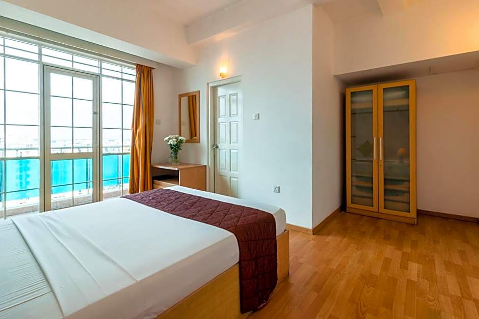 The Global Towers Hotel & Apartments offers Two-Bedroom Apartments with sea/city views, accommodating 4 adults and 1 child, with 2 Queen size beds. They also provide Three-Bedroom Apartments with sea/city views, accommodating 6 adults and 1 child, with 2 Twin beds and 2 Queen size beds. The hotel includes Double or Twin Rooms for single occupancy, with a Queen size bed and Twin beds, accommodating 2 adults. Smoking is not allowed in any of these rooms.