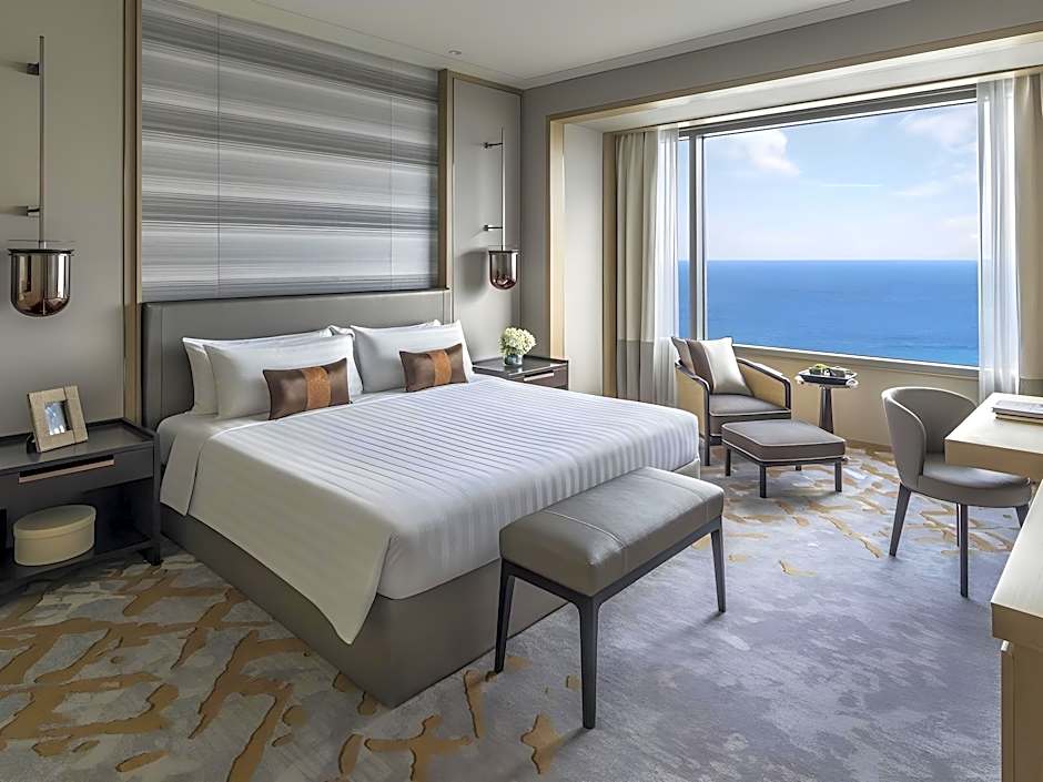 The hotel offers a variety of rooms including Deluxe Ocean View King, Executive Suite, Deluxe Ocean View Twin, Horizon Club Lake View King, Premier Balcony Room King, Deluxe Lake View King, Horizon Club Ocean View King, Deluxe Lake View Twin, and Premier Ocean View Twin. All rooms have a size of 452 sqft (except Premier Ocean View Twin with 441 sqft) and do not allow smoking. Occupancy for all rooms is 3 adults and 2 children. Beds range from 1 x King size bed to 2 x Twin bed.