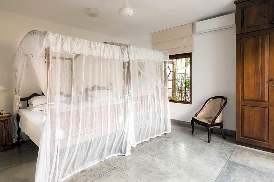 Finished with polished cement flooring, air-conditioned room includes antique wardrobe, seating area and garden views. The non-attached bathroom is exclusive to this room and comes equipped with hot and cold shower and amenities.