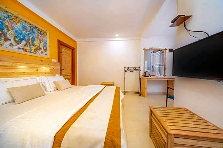 We loved the size of the family suite, the location close to town but away from the noise. (You will need a car or tuk tuk to get around as it's at the end of a steep road). The kind staff and great breakfast and dinner options. The bed was very large and comfortable and the room had A/C (though not needed during our stay). They also have shampoo and soap dispensers in the shower (which was also great, hot water, spacious and with 3 settings) instead of single use plastic. The welcome drink and cool towels when returning from the day's excursions was also a nice touch.