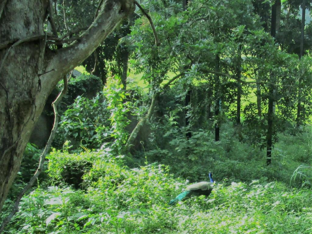 Lovely garden and porch where you can sit and watch passing peacocks. Really friendly and helpful owner and staff and absolutely wonderful food and treatments. Also sold Ayurvedic medicines at normal prices!