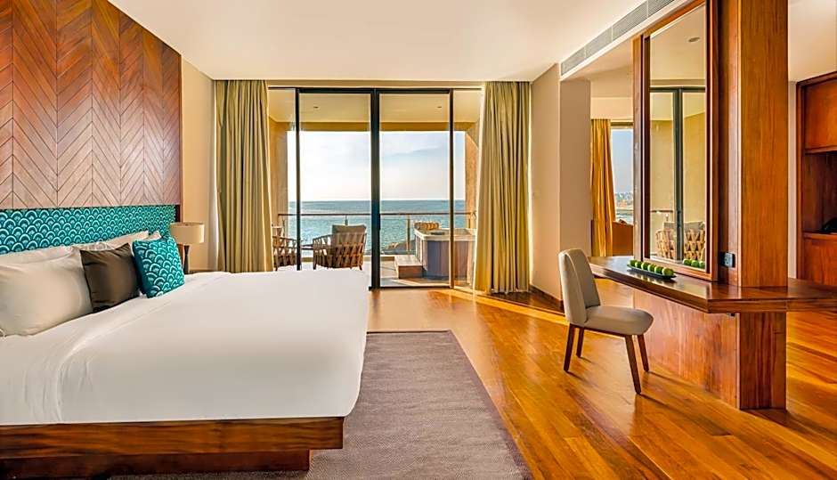 This suite has a balcony, mini-bar and tea/coffee maker. Each suite contains two lounges and a private plunge pool to bask in decadence as you overlook the stunning Indian Ocean.