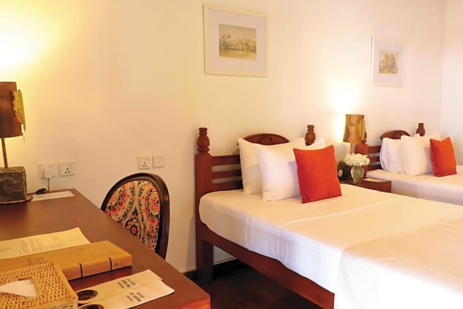 The Heritage Hotel Galle Fort offers a variety of room types including Superior Triple Rooms, Superior King Rooms for single occupancy, and Deluxe Twin Rooms for single occupancy. The rooms are non-smoking and each has a size of 291 sqft. The rooms can accommodate up to 3 adults and 1 child and have a combination of twin and double beds.