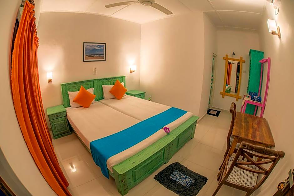It is directly at the beach and that was such a benefit for us. Whenever we went for a surf or swimming we didnt need to take anything with us and even could leave the key at the reception so we never had to be concerned about leaving our stuff unattended. They also have sunbeds which are in the shade and can be used when ordering at the restaurant. The location is great for all surfers. We had a room with air condition and I can really recommend that. Sri Lanka has a high humidity and is very warm and the air condition helps enormous. It is quiet which is great and can be an issue compared to other accomodations with windows to the main street. There were great food options close by (our favourite: No Name - roti restaurant).