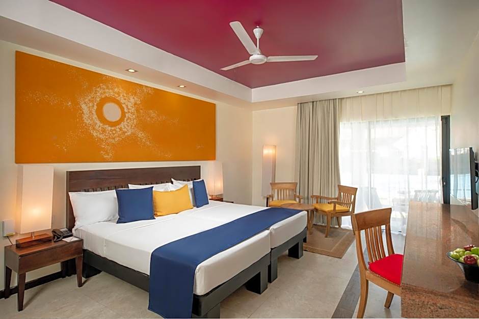Rooms are equipped with air conditioning, balconies or patios, and garden or beach views with en suite baths featuring free toiletries and a bidet. The grounds invite relaxation with a sun deck and beach umbrellas, plus garden spaces, terraces, and kid-friendly options like a kids' pool, playground, and kid-friendly buffet. Address: Kammala South Waikkal, Negombo.