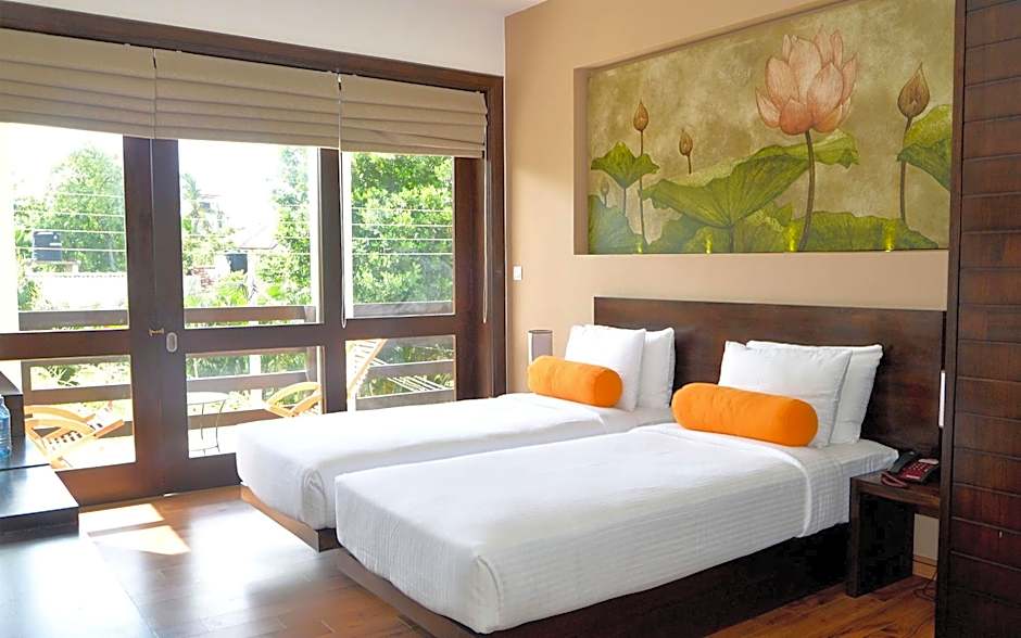 Hotel located on a back road from the main street. My friend and I walked back from the main road and unfortunately had a slight incident with a youth trying his luck and following us on a motorbike, it was just outside the hotel and staff assisted us promptly and took the matter seriously. Not at all the hotels fault the behaviour of this individual but just be mindful if walking at night and get a tuk tuk to take you all the way back