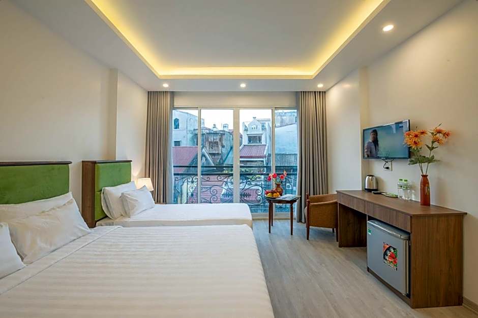 A seating area with a flat-screen TV, a desk, a balcony and a private bathroom are offered in this family room. The unit has 3 beds.