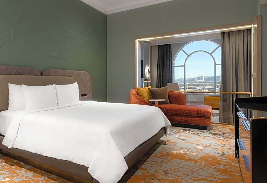 Recensionerna uppgår till 12 713 och speglar ett brett spektrum av resenärsupplevelser. Pris från [pris saknas] för en vistelse som blandar storslagen stil med Las Vegas-energi.