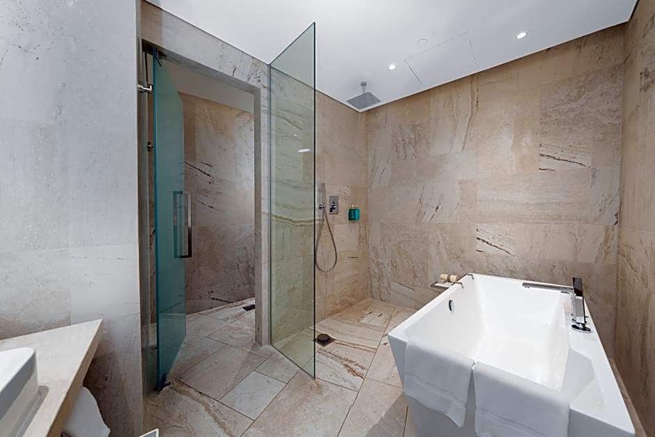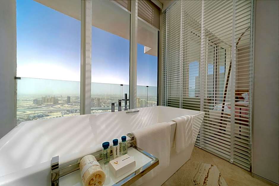 Dyk ner i den lyxiga upplevelsen på , där två spektakulära pooler väntar på att förvandla din dag till ett solkysst paradis! Föreställ dig att du ligger och slappar vid takets infinitypool, exklusivt för vuxna, cocktail i handen, och njuter av panoramautsikter som får dina Instagramföljare att häpna. Under tiden kan barnen plaska runt i sin egen takplaskpool, särskilt utformad för dem, komplett med en grund del för en perfekt dag i solen. Oavsett om du kopplar av vid poolen eller njuter av cabana-service vid poolkanten kommer du att befinna dig i en salig tropisk oas mitt i hjärtat av Dubai!