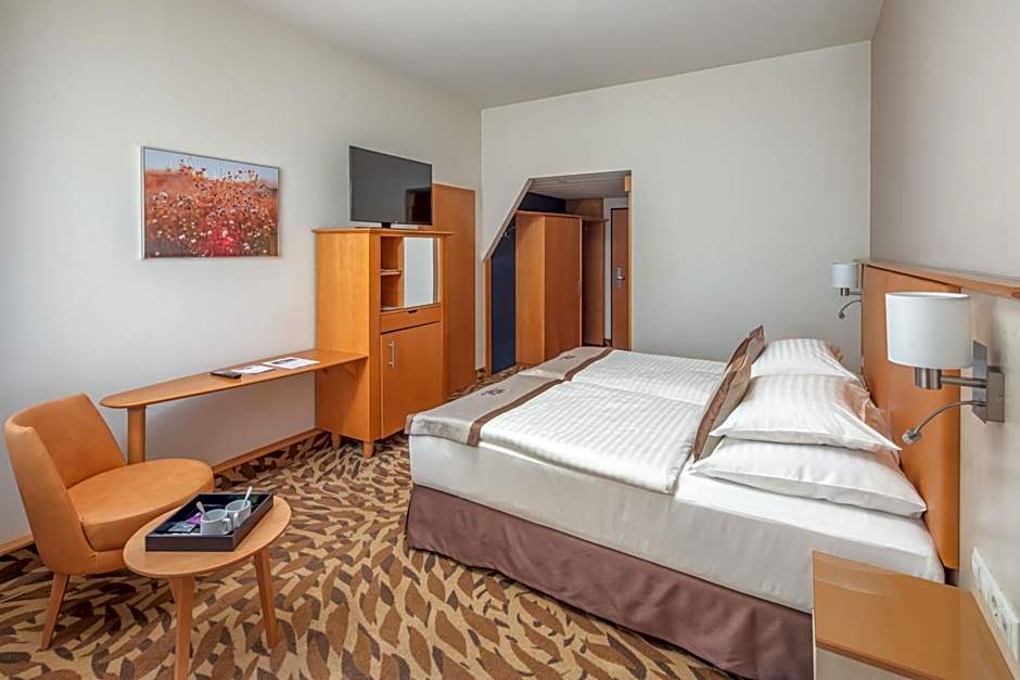 Maten och kvällarna bjuder på en varm, gemytlig stämning tack vare Corvinus, hotellets restaurang med traditionell atmosfär. Gratis livemusik eller föreställningar kan ge kvällarna ett lekfullt soundtrack, och hiss till de övre våningarna gör det enkelt att ta sig upp och ner. Läget är bara ett stenkast från Hévíz sevärdheter och termalsjarm, vilket förenar lättillgänglig utforskning med välbefinnande.