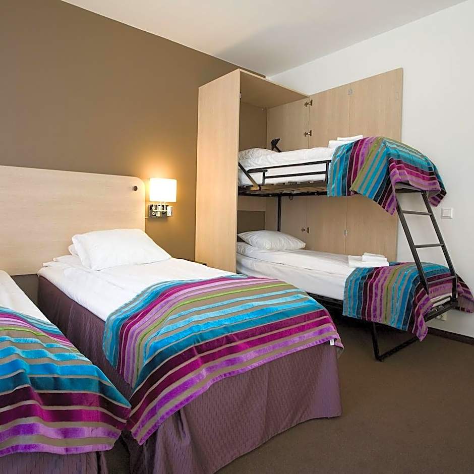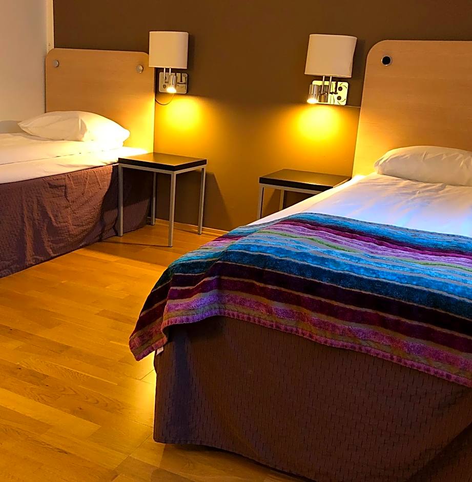 At Hotell Charlottenberg, the available room types include Standard Twin Rooms, Superior Double Rooms, and Family Rooms. All rooms are non-smoking and have a size of 172 sqft. The Standard Twin Room accommodates 2 adults and 1 child, with 2 twin beds. The Superior Double Room also accommodates 2 adults and 1 child, with a queen-size bed. The Family Room accommodates 4 adults and 1 child, with 2 twin beds and 2 bunk beds.