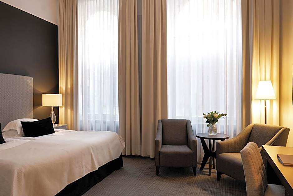 Really grand hotel close to the centre of town. You are greeted in a grand entrance hall by friendly, bilingual staff. The rooms are accessed by two lifts at the far end of the hotel by the rear stairwell or an elegant stairway by reception. The rooms are clean and well kept. They may not be the most modern in style but have everything you could need, and they fit in very well with the style of the building. Some rooms have a view of the river, which in winter is a lovely sight to wake up to. There is a secure car park very close by, about a 2 minute walk, and an open car park even closer. The large breakfast room is very much of its time and could be refurbished while retaining it period features. There are multiple breakfast options to suit all tastes. The orange juice and coffee were very nice. The only downside was that the scrambled eggs and bacon were lukewarm to cold. I stayed here last year and don't remember this before, so maybe it was a one-off bad luck. One other small issue was that there are a lot of lamps and not a master light switch by the bed. I found you had to go around the room, turning off about 5 light switches. It's not a big problem, but one that I've found other hotels resolve with one switch by the bed.