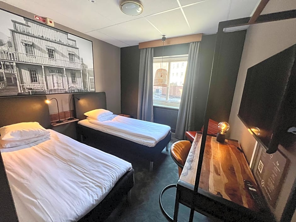 This hotel was very accessible in the centre of Karlskona. We booked 2 rooms, which were sized well with comfortable beds. The bathroom was good if a little compact. There were a few outdated fixtures and fittings, but they did not impact on our stay. The breakfast was well presented and plenty of choices provided. There are shared kitchen facilities provided, which if you wanted to use was available.