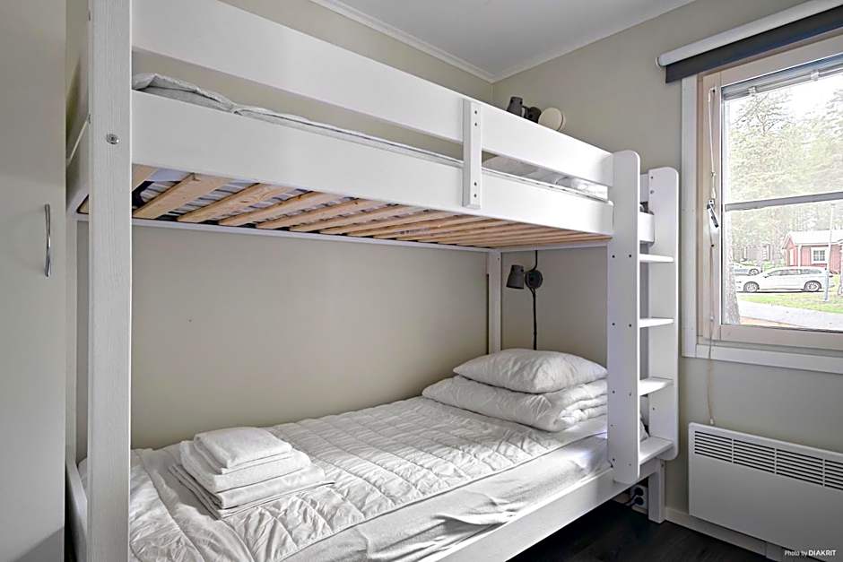 Extras include options on the water and in the soft outdoors: Outdoor swimming pool (extra charges), Waterslide, and opportunities for sport like golf, tennis, and mini golf (all with extra charges). With river, lake, and garden views and facilities like a private entrance, beach chairs, and a patio, this camp near Luleå invites guests to linger and explore the region.