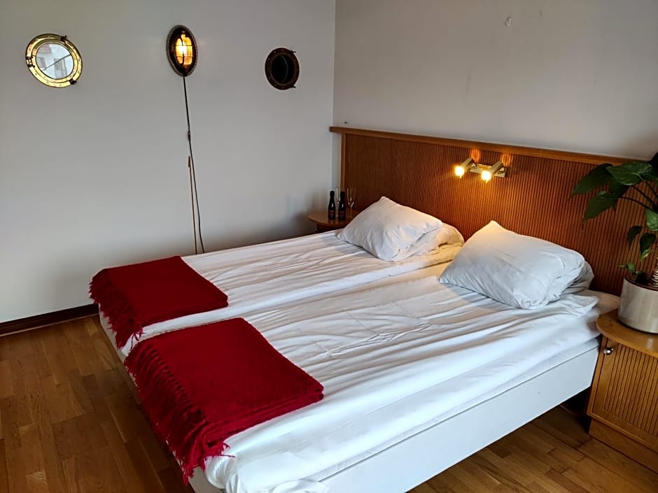 Given the mixed reviews and some of the photos, we weren't sure beforehand what this hotel was going to be like, but it pleasantly surprised us - WE REALLY LIKED IT! Yes, it's a bit old, the outside looks unappealing, and parts of the inside do look a bit tatty, but it's got a surprising charm to it, and it provided us a great place to stay for a few nights, at a sensible price, with something different from a chain hotel. I have to give lots of praise for the lady on reception, who was BRILLIANT, very friendful and helpful to us with restaurant suggestions, and getting us some fans to help cool our rooms. The rooms are comfortable enough, the 'nautical' theme works surprisingly well, but they could do with better cleaning in the rooms and also the public areas, nothing too bad, just not as good as it probably should be. Breakfast is a simple buffet style - muesli, breads, meats, cheeses, cooked bacon and scrambled egg, and good coffee and juices. There was plenty of it and it tasted good. The breakfast room is a bit small for the size of hotel, so as others have commented I can imagine it would get full on a busy day, but we had no problems getting a table on both days of our stay. Motala itself is a charming town, it's lovely to walk along the canal between the lakes, there is a good selection of places to eat, and the motor museum (included with the hotel as they're owned by the same people) was a great place to spend an hour or so. With a good breakfast included, we thought this was an excellent value for money hotel, just don't expect a super modern hotel and go with its' charms!