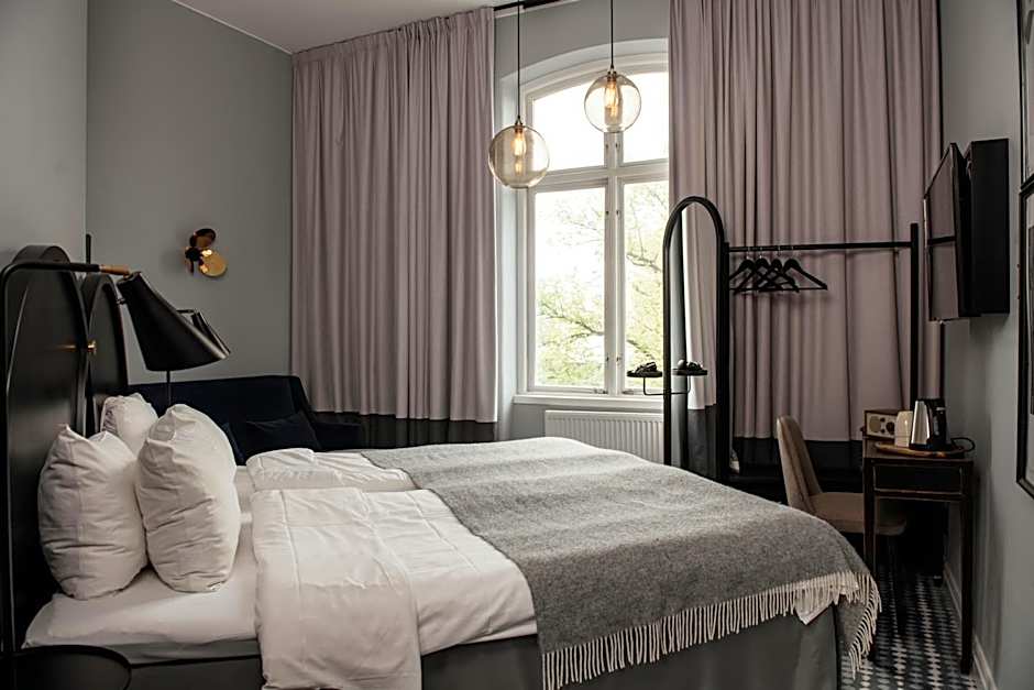 From first to last impressions, I enjoyed almost everything about my stay. The historic building—it was originally a bank—has been sympathetically converted into a lovely hotel. The rooms have high ceilings, windows that open, well-sized bathrooms, comfortable beds, a desk and chair, and a lounge chair. Decor in the common areas is really lovely. The hotel has a great vibe. Breakfast and dinner are included in the rate, as is afternoon fika and all-day tea and coffee. The bar staff are efficient and lovely, making sure everyone is looked after. The location is fantastic. 10 minutes walk from the train station and you can see Örebro Castle from the front steps of the hotel, which fronts the Svartån (river). Close to bars, restaurants, theatre and 20 minutes walk from the open air museum, Wadköping. Highly recommended.