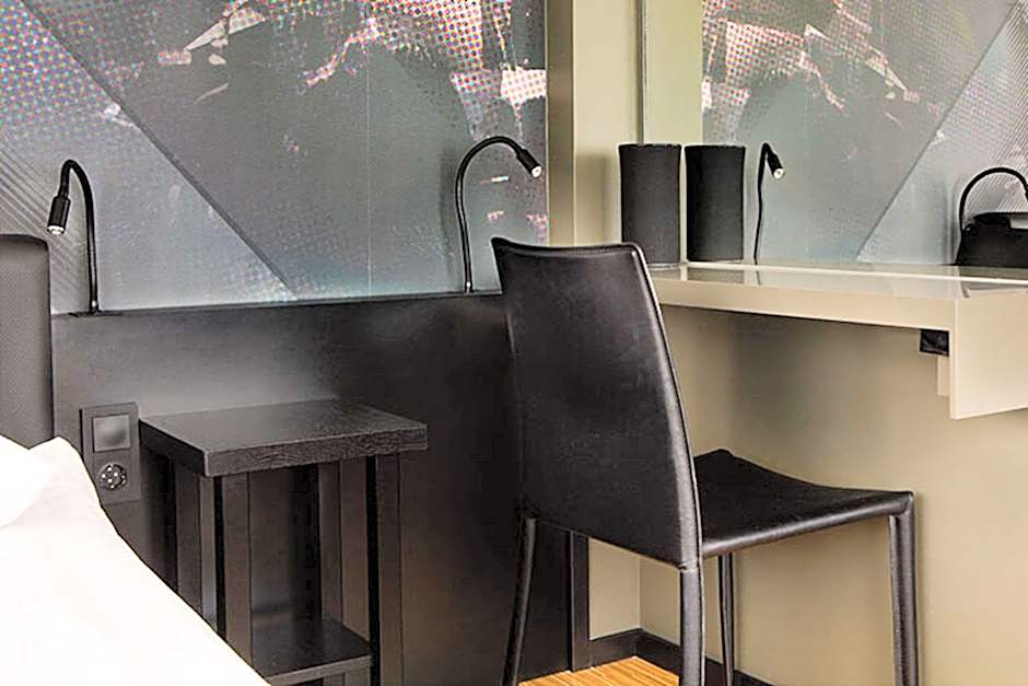This windowless room, with a flat-screen TV, work desk and private bathroom with shower, features a colorful wall that displays subtle light. This room can be set up with either a double bed of 55 in or a single bed of 35 in. Please note that there is no space for extra beds or baby cots in these rooms.