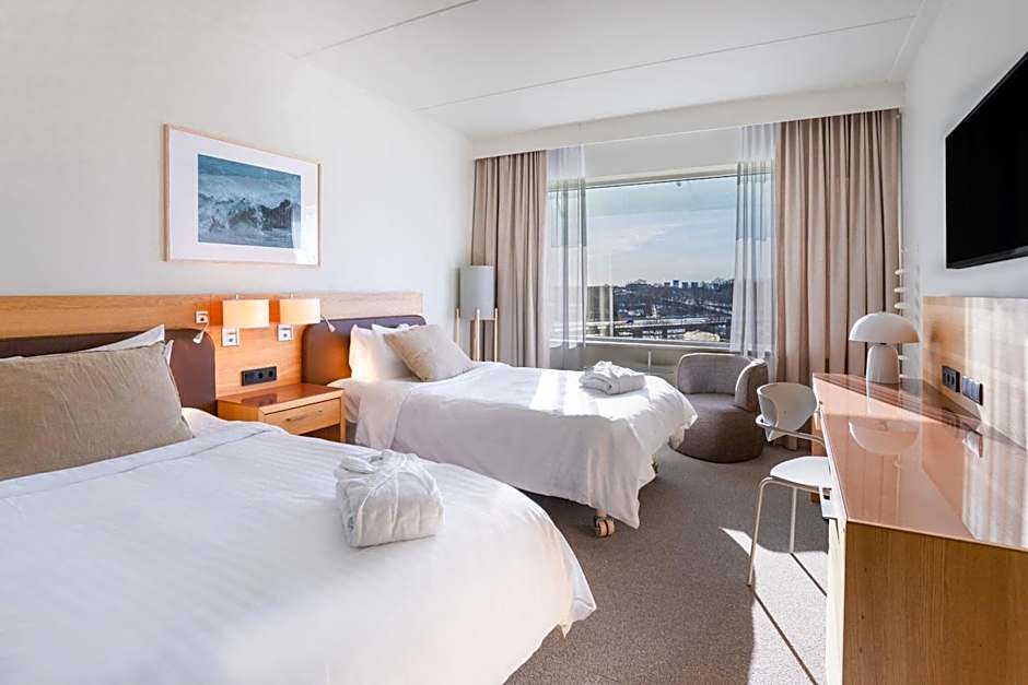 Guests at the Courtyard by Marriott Stockholm Kungsholmen can make the most of their leisure time with a variety of amenities provided by the hotel. They can relax and unwind in the sauna, keeping themselves refreshed and rejuvenated. For those who enjoy staying active, the fitness center is the perfect place to maintain a workout routine while away from home. Additionally, guests have the option to rent bicycles and explore the surrounding area through cycling and hiking, allowing them to enjoy the beautiful scenery of Stockholm.