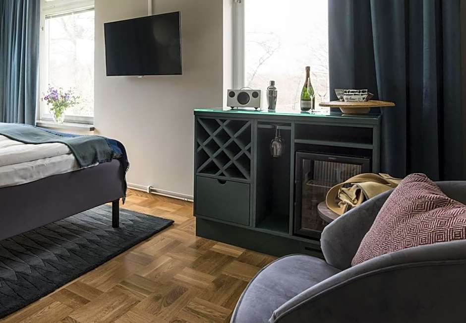 This hotel is a historic palace with beautiful furnishings and artwork. Most of the hotel rooms are in an addition to the original building, which means they are modern and clean but don't feel like a historic palace. I thought this was a nice balance of getting to feel like I was sleeping in a palace but still having modern bathrooms and amenities. The room had very tall ceilings and blackout curtains to let you sleep when the sun stays up late during the Swedish summer. The neighborhood is great for exploring--forest paths, lake swimming, boat access, etc. It was easy to get there using public transportation. The breakfast was fantastic!