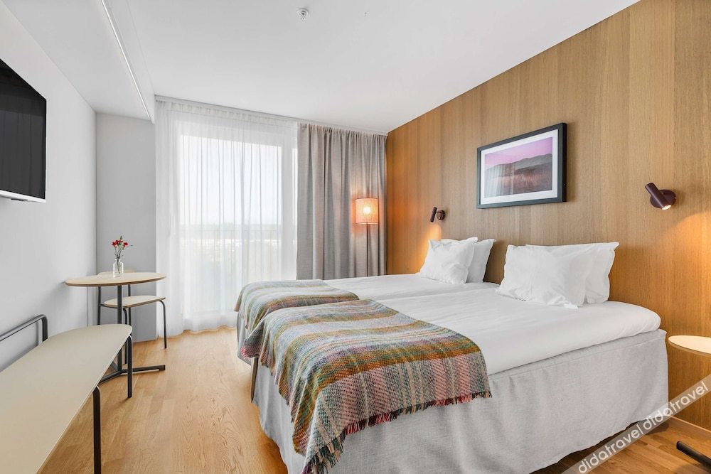 Very friendly and helpful staff. Great location if travelling with car - outside of the city, easily found, spacious free parking. Spacious rooms and great beds (a bit on softer side but not too soft). Warm enough douvets. Good soundproofing with windows closed, good curtains, quiet ventilation. . Enough power sockets and in proper places. Balcony with huge sliding doors - nice in good weather. Spacious lounge zone with wool plaids. Basic but sufficient breakfast with enough options. Sandwiches and salads + some drinks available at the reception 24/7.