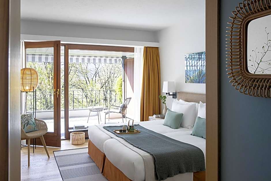 This very spacious duplex suite is located in the Pavillion Ascona and features a balcony. It has an anteroom, 2 bedrooms and a lounge with large windows, 2 luxurious bathrooms, air conditioning, a fax, wireless LAN and large windows.