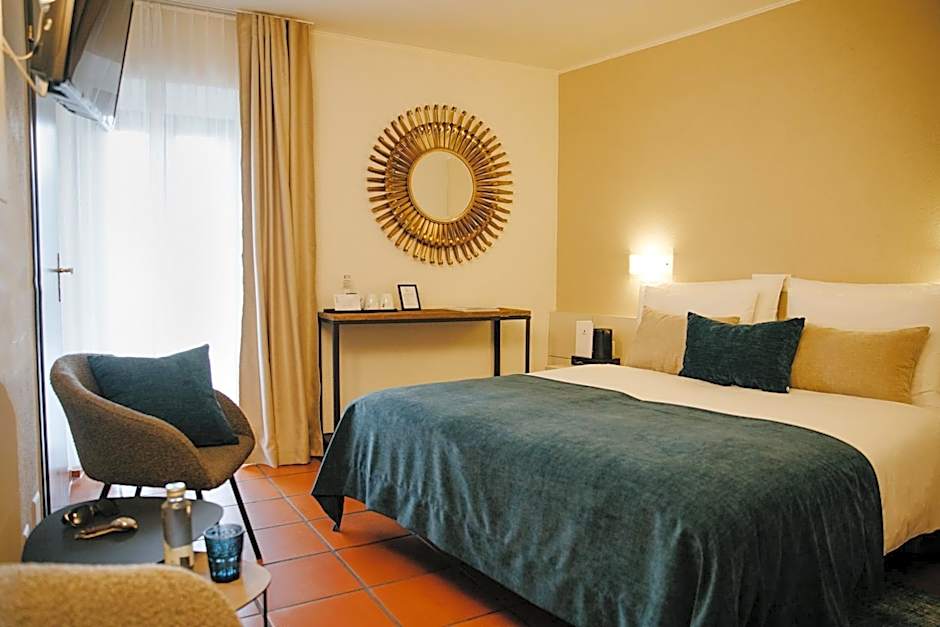 Room with attached bathroom on the ground floor with views of the courtyard.