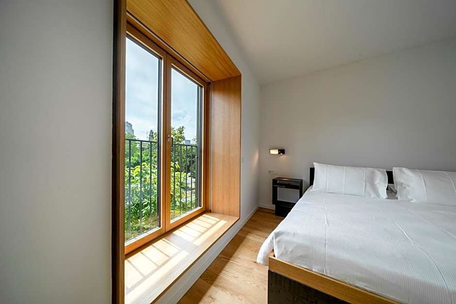 At SET Hotel.Residence by Teufelhof Basel, there is a variety of room types available. The Double Rooms and the Double Room - Attic can accommodate 2 adults and feature a Queen size bed. The Family Two Bedroom with Kitchenette and the Apartment with Garden View can accommodate 4 adults and 2 children. They have different bed configurations, with the Family Two Bedroom having 2 Twin beds and 1 King size bed, while the Apartment has 1 Queen size bed and 1 Sofa Bed. All rooms are non-smoking.