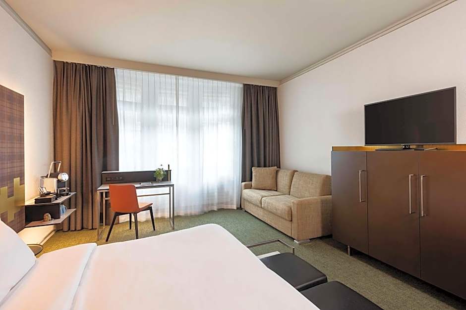 We were given a welcome room upgrade, so this review is for a sixth floor junior suite. Spacious room with large bed, plenty of room to hang clothes, separate WC and shower. Coffee making facilities (no kettle, but perhaps one would have been available on request). We were advised that drinks in the mini bar were free, but this seemed to refer to the two bottles of water in the fridge. Nice towels and toiletries, large wash basin. Air conditioning, though I am not sure if it was working as room was stuffy. Good desk and additional easy chair. 10 minutes walk to main railway station, though streets were crowded and it was a little difficult to wheel a suitcase through all the people!